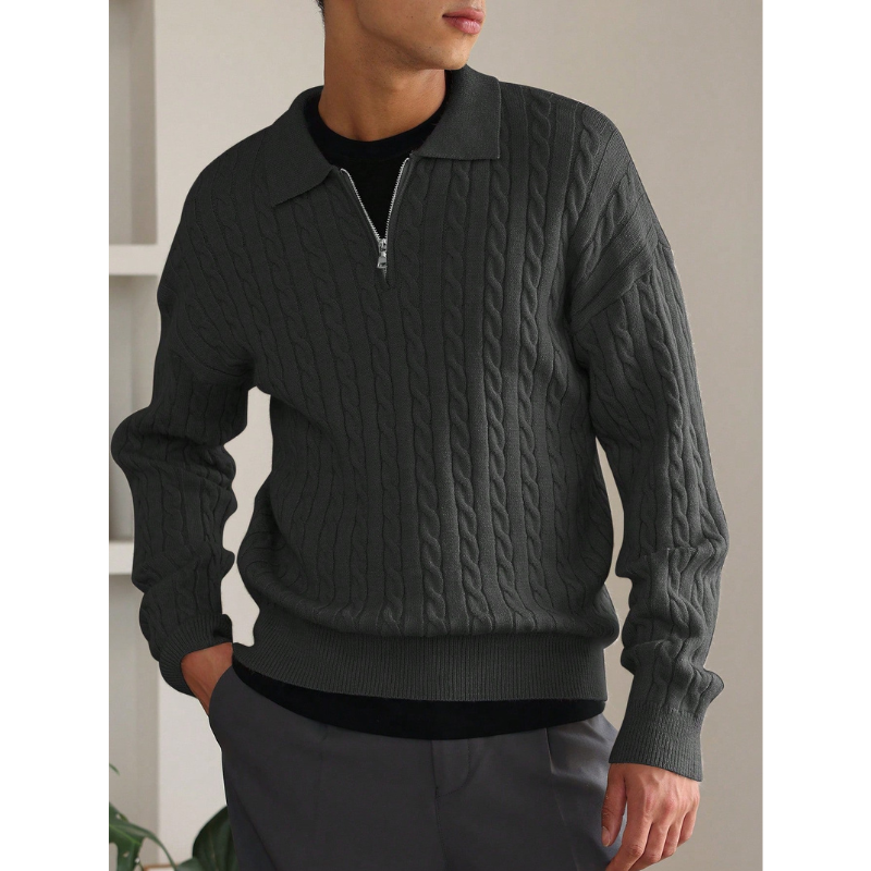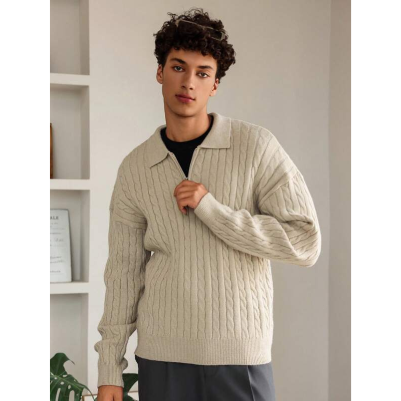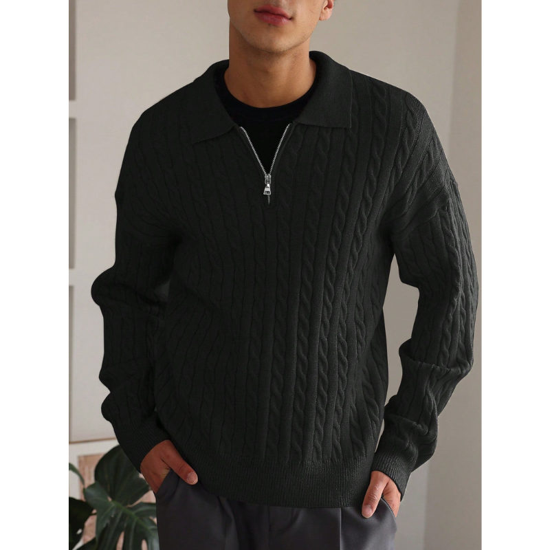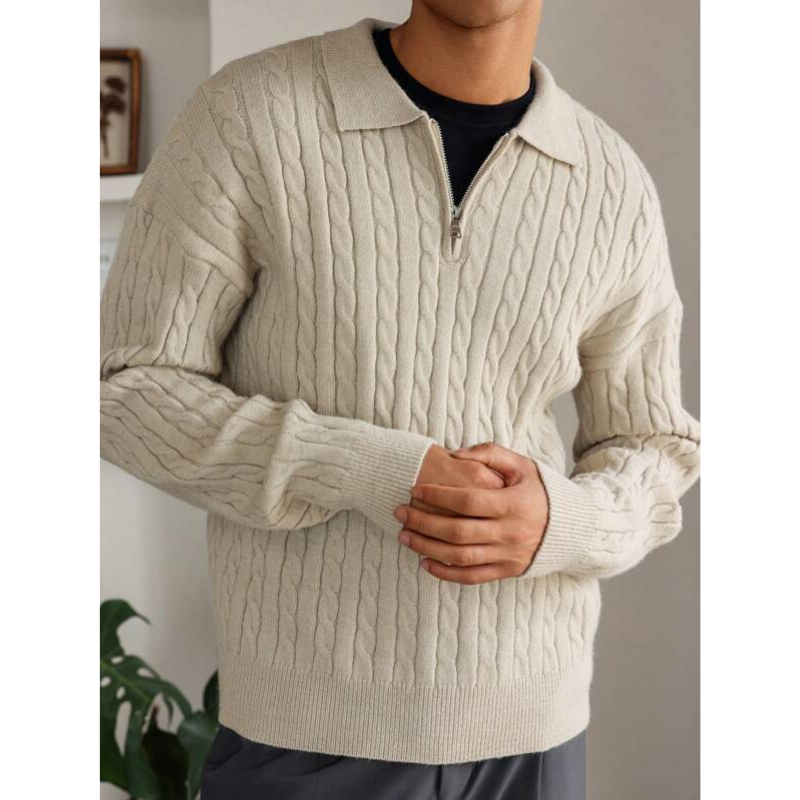 Elevate Your Comfort: The Elarno Cable Knit Half-Zip Sweater combines refined texture with a modern fit for an effortlessly stylish look.