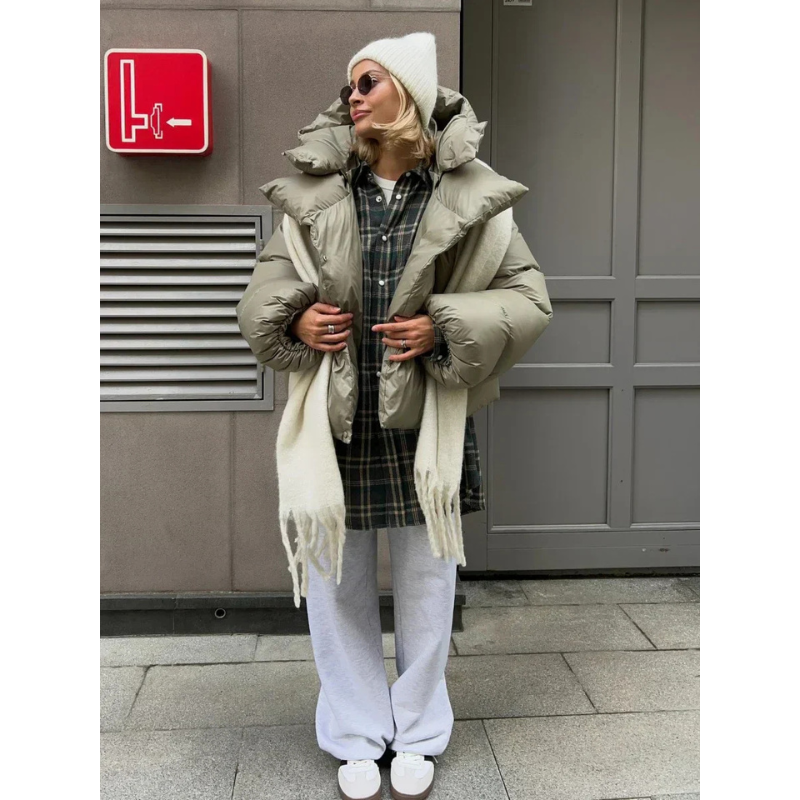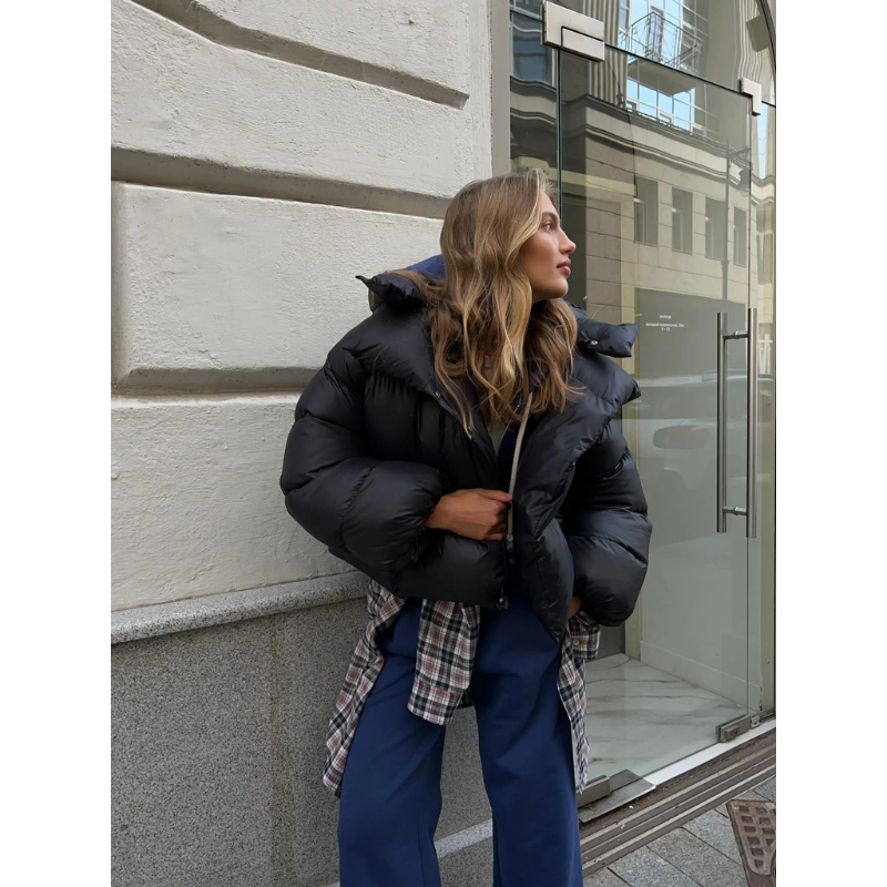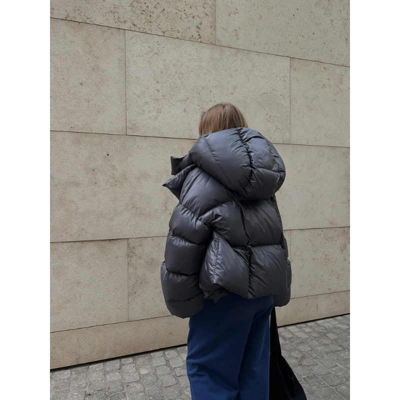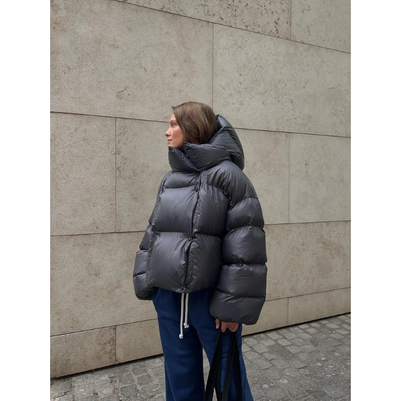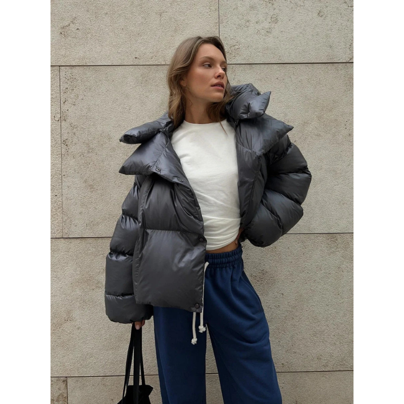 The voluminous exterior offers a contemporary silhouette, while the deep anthracite shade with a subtle sheen delivers a luxurious, refined finish. Perfect for city walks and daily outfits, this winter jacket is your go-to choice for making a statement.