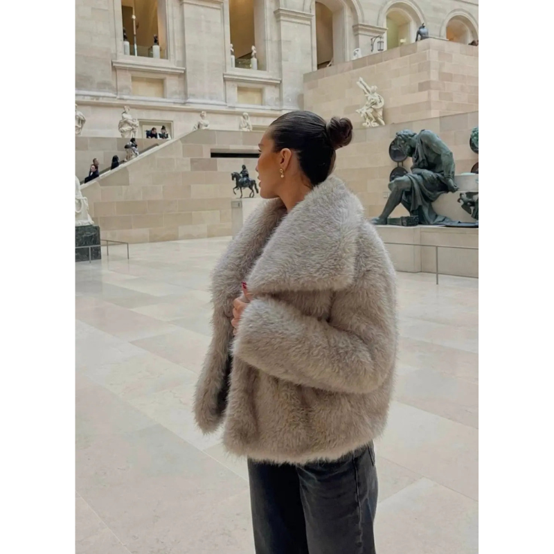 Luxury VelvetTouch Faux Fur Coat for Women – Elegant Winter Style