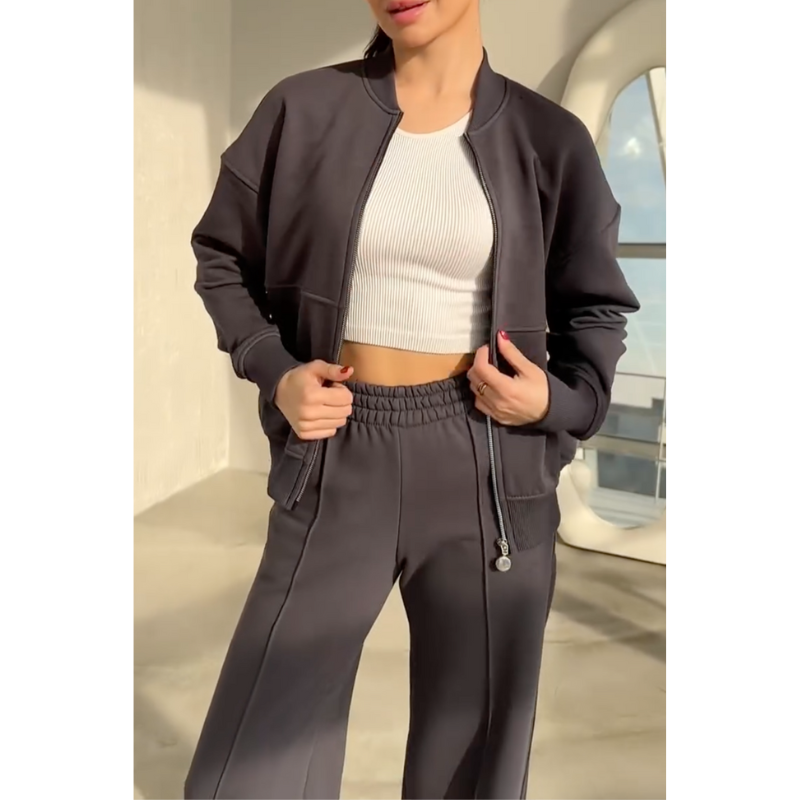 Rae Street Two-Piece Women's Lounge Set – Bomber Jacket & Wide-Leg Joggers