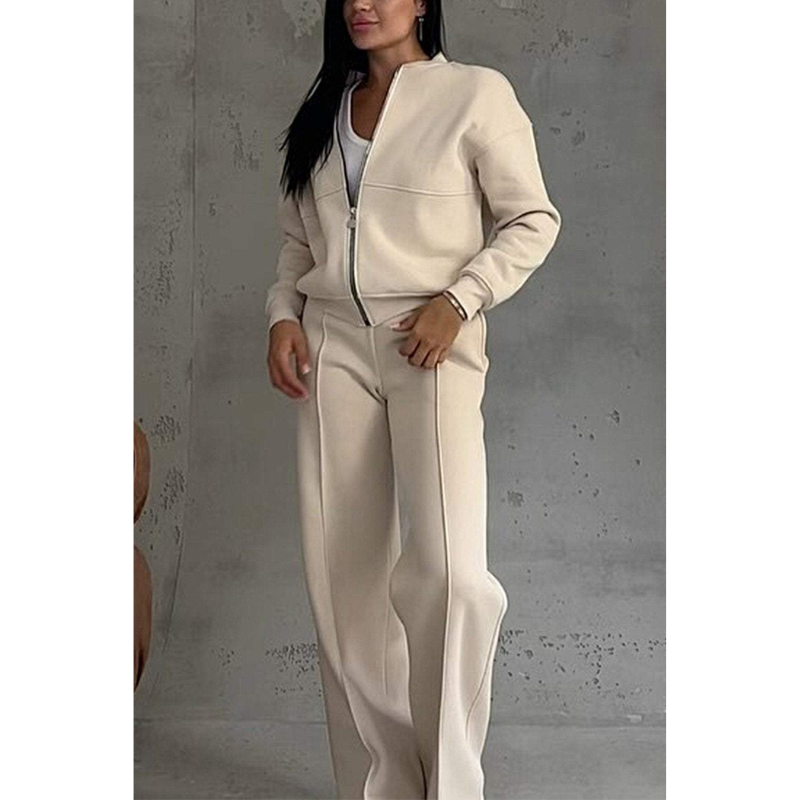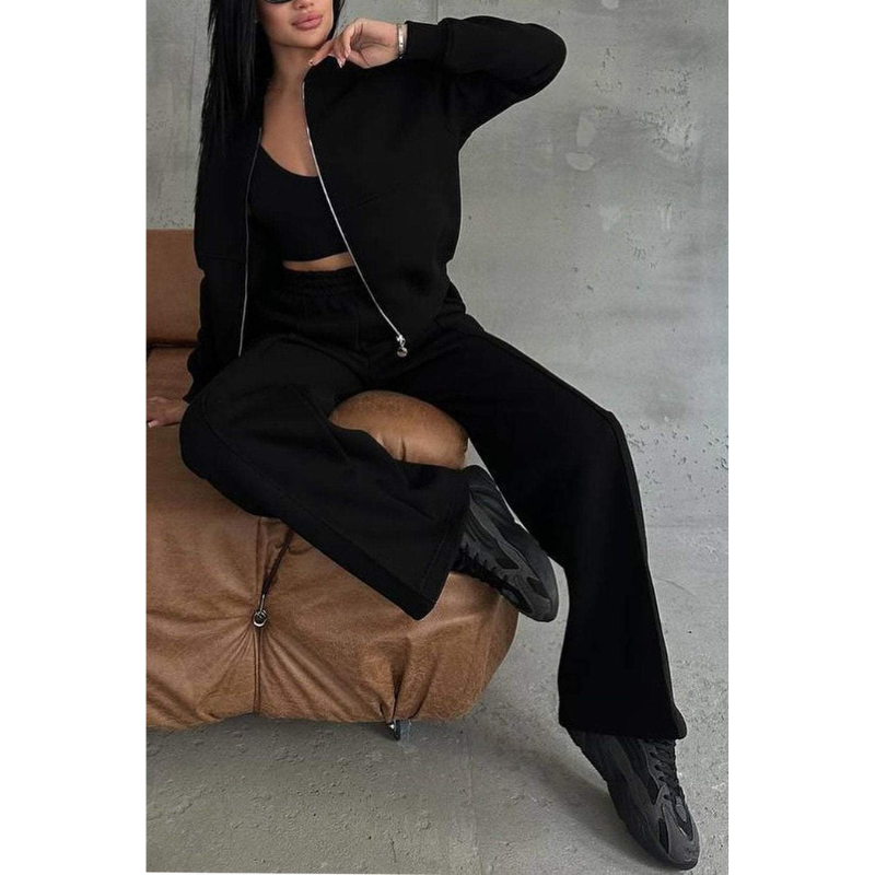 Elevate your style with the Rae Street Lounge Set, a perfect blend of comfort and modern design. This chic two-piece set features a zip-up bomber jacket with elastic cuffs for a sporty vibe, complemented by wide joggers that offer a relaxed silhouette ideal for contemporary streetwear.