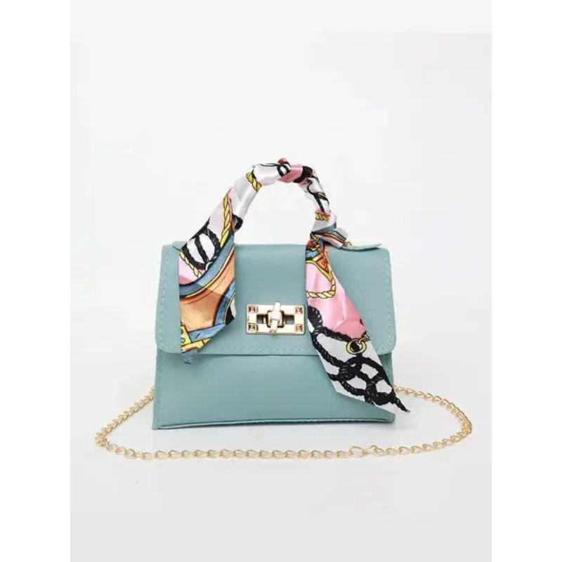 Featuring a handle wrapped in a colorful scarf, this bag provides a unique and playful accent without being over the top.