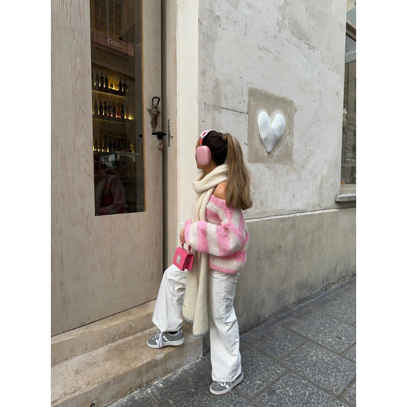 The oversized fit drapes beautifully, creating a relaxed silhouette that flatters every body type. Its striped pattern adds a playful yet polished touch, ensuring you look modern and chic.
