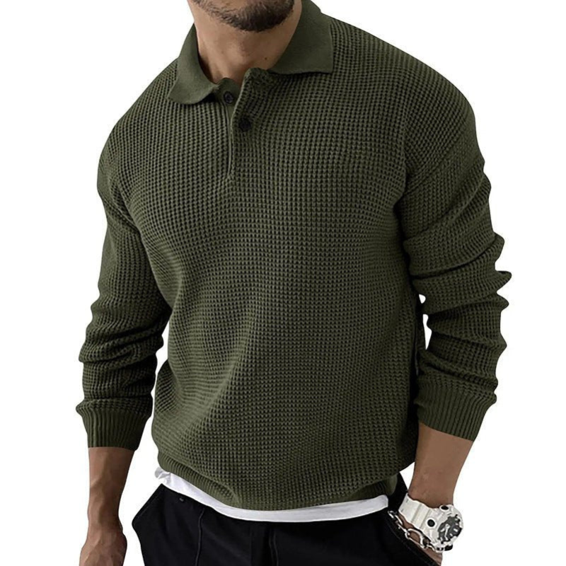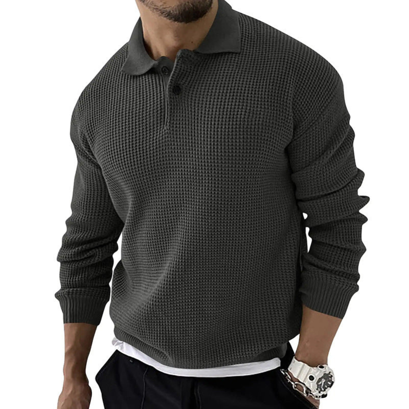 Elevate Your Wardrobe with the Delvano Knitted Polo-Collar Sweater. This stylish piece features a refined texture and a classic polo collar, making it the perfect blend of casual comfort and modern elegance.