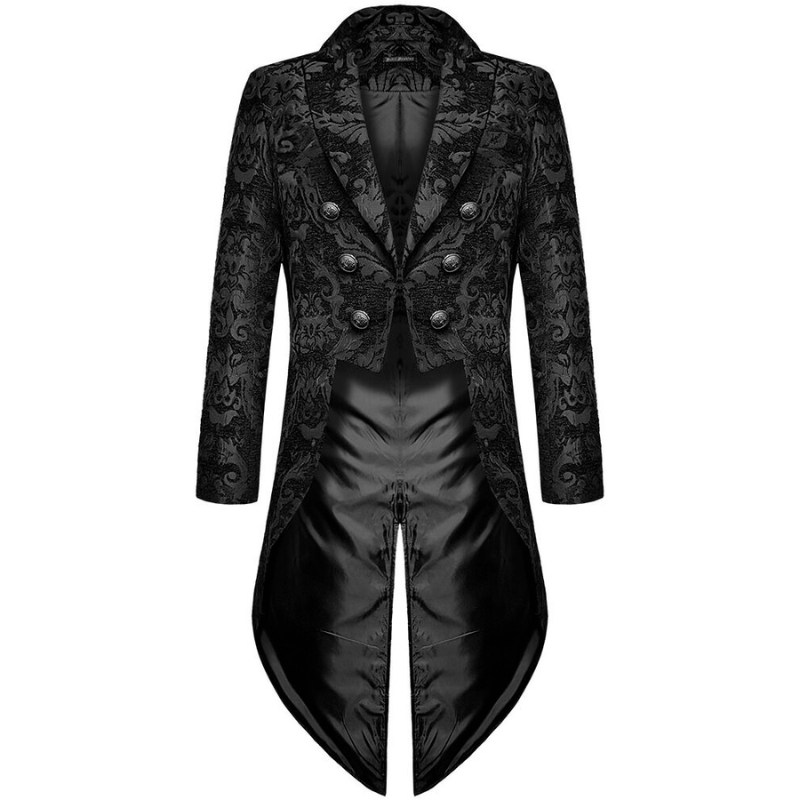 Elevate Your Style with our Victorian-style men's tailcoat, perfect for those who appreciate class and elegance. The richly woven brocade pattern and double row of buttons create a royal appearance that is sure to turn heads.