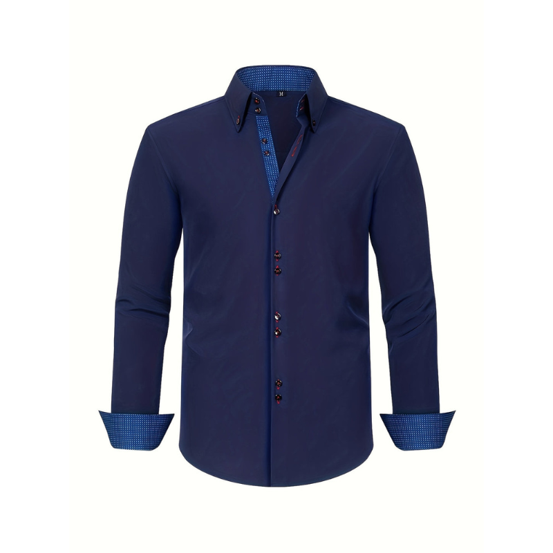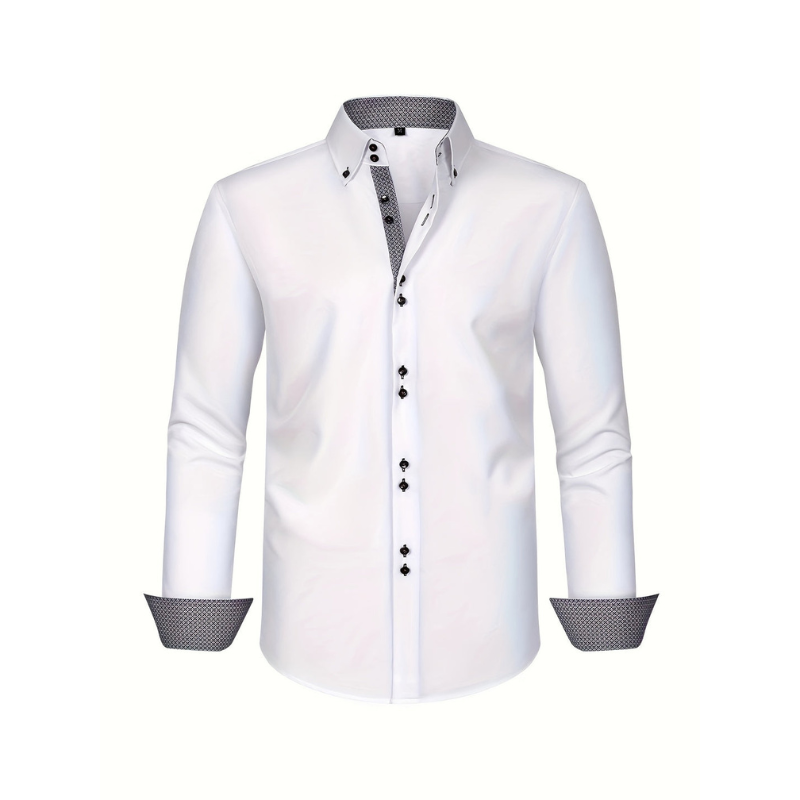 Men's Double-Breasted Shirt with Stretch Fabric and Contrast Cuffs